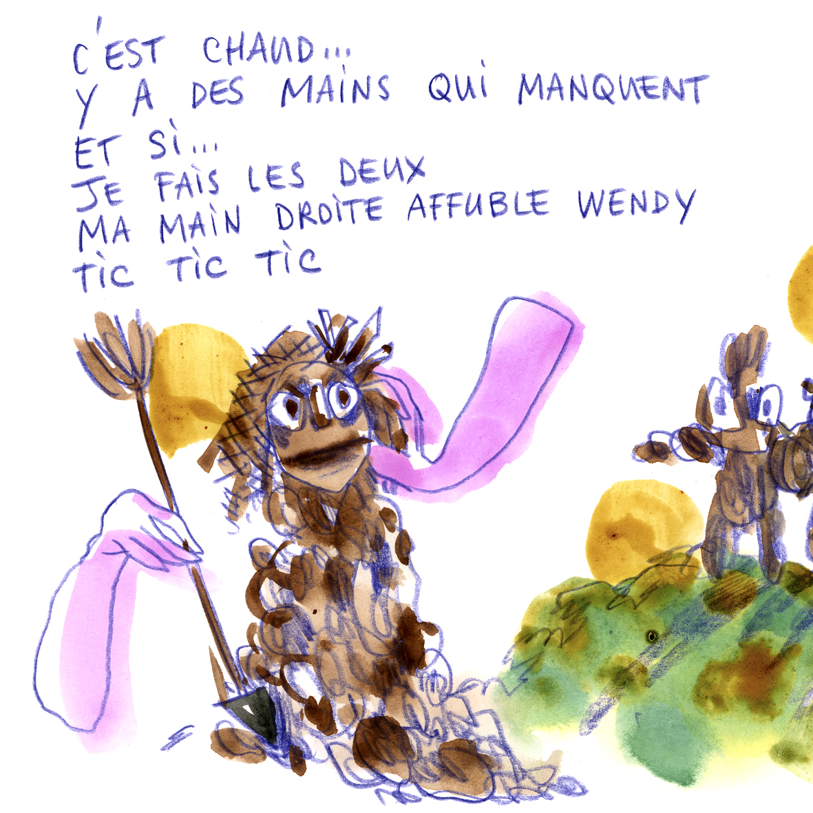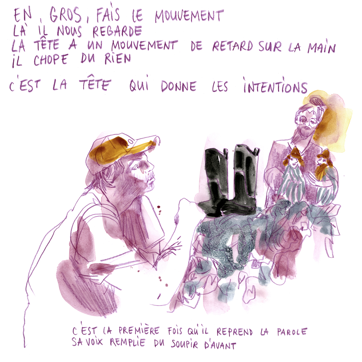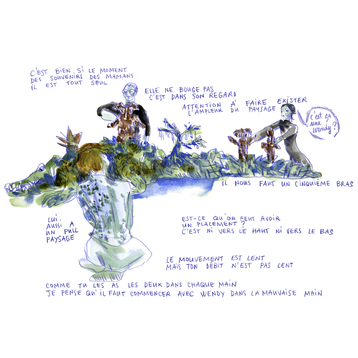 Joëlle Gagliardini enseigne aujourd’hui le dessin et l’illustration de mode à la HEAD – Genève. Illustratrice du réel, elle s’installe dans les théâtres et les jardins, pour saisir les images et les mots des habitant.e.s de ces territoires vivants. https://www.instagram.com/labobinette/