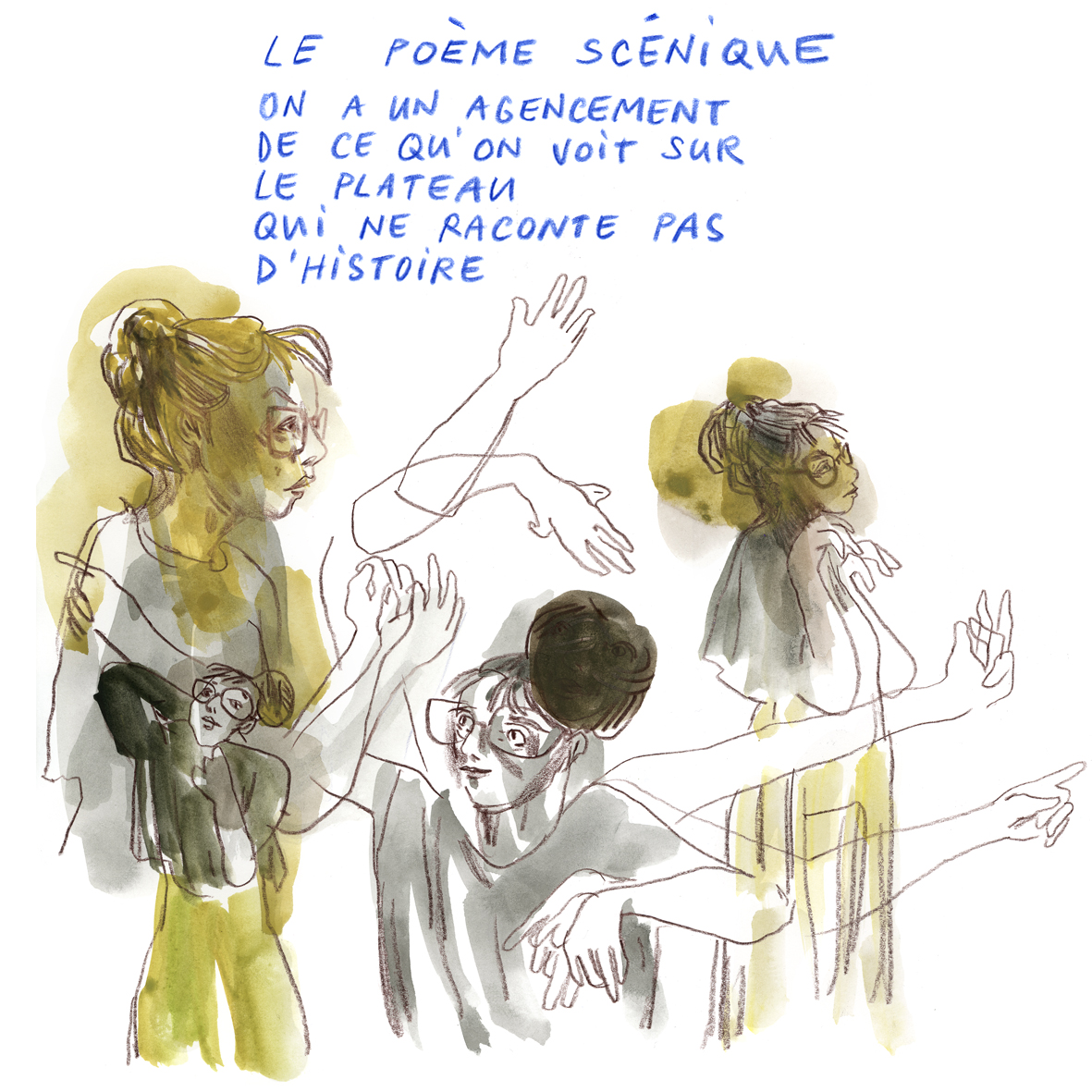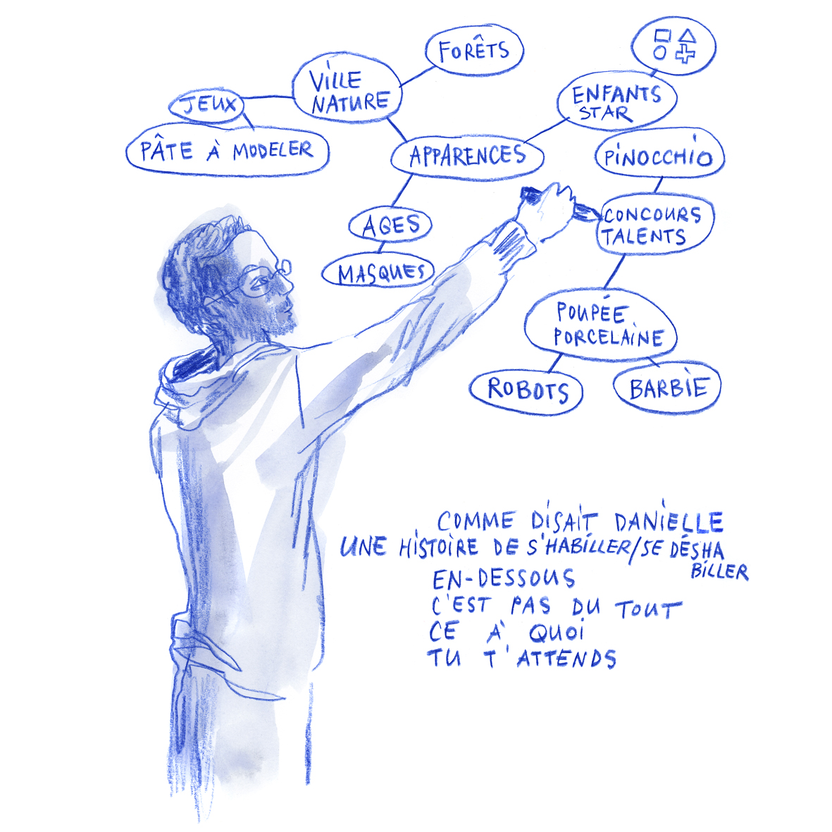 Joëlle Gagliardini enseigne aujourd’hui le dessin et l’illustration de mode à la HEAD – Genève. Illustratrice du réel, elle s’installe dans les théâtres et les jardins, pour saisir les images et les mots des habitant.e.s de ces territoires vivants. https://www.instagram.com/labobinette/