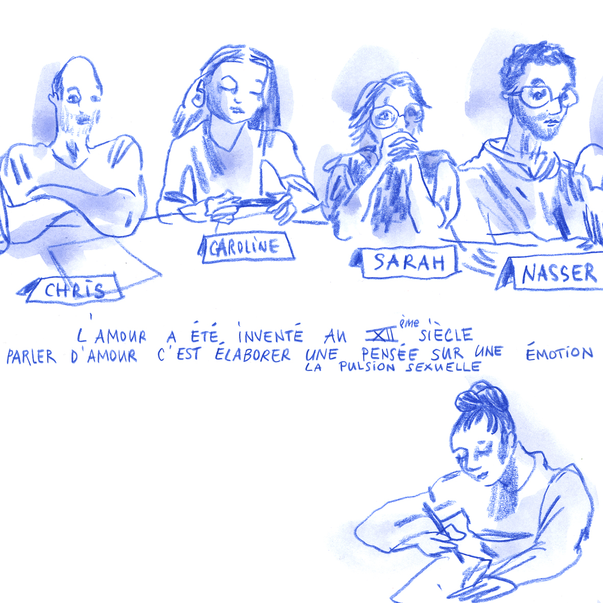 « J’ai découvert que j’aimais écrire du théâtre. Les dialogues, les interactions, double sens et sens cachés dans ce que les gens disent. La manipulation derrière le langage. »