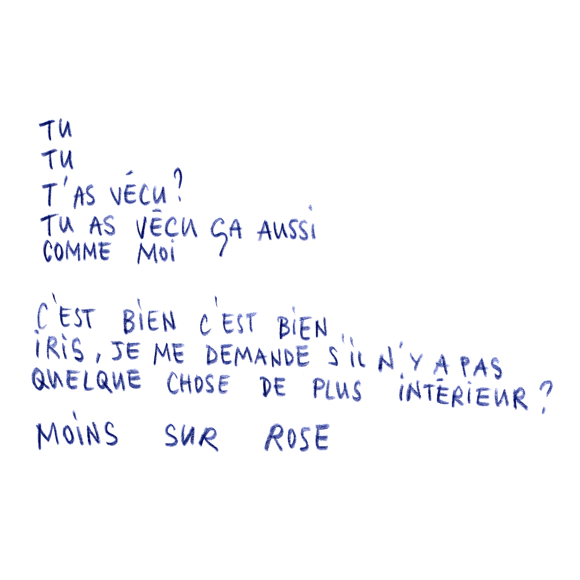 « J’ai l’impression que je peux toucher les gens aussi bien en chantant qu’en parlant, mais que le chemin est moins direct avec un texte parlé. Ça me demande plus de travail et d’introspection. »