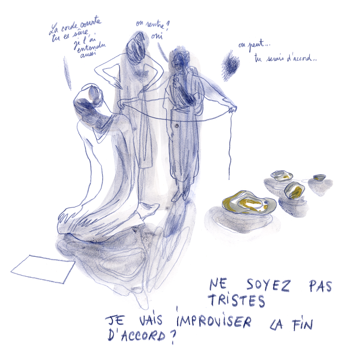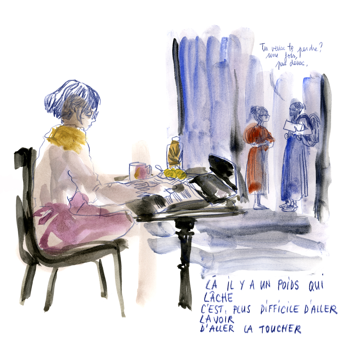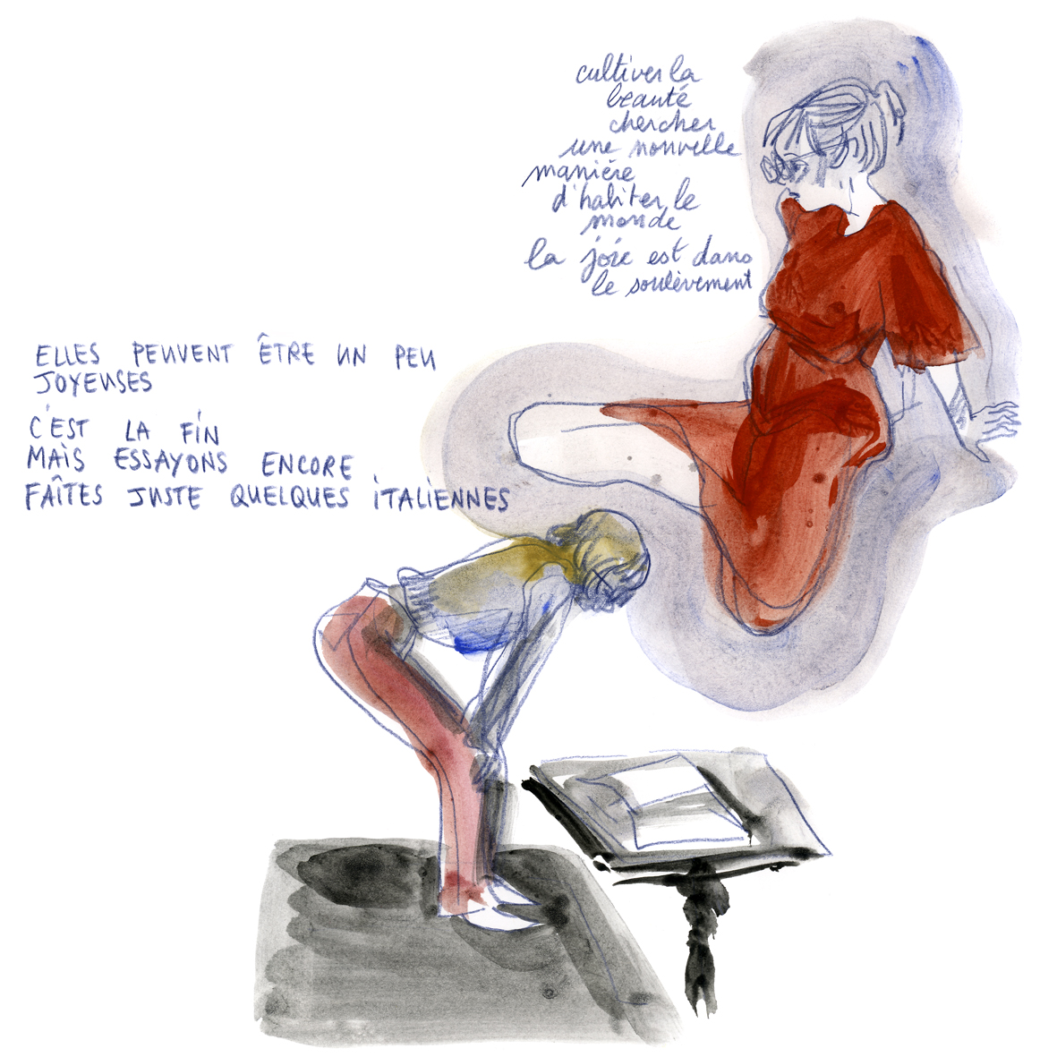 Joëlle Gagliardini enseigne aujourd’hui le dessin et l’illustration de mode à la HEAD – Genève. Illustratrice du réel, elle s’installe dans les théâtres et les jardins, pour saisir les images et les mots des habitant.e.s de ces territoires vivants. https://www.instagram.com/labobinette/