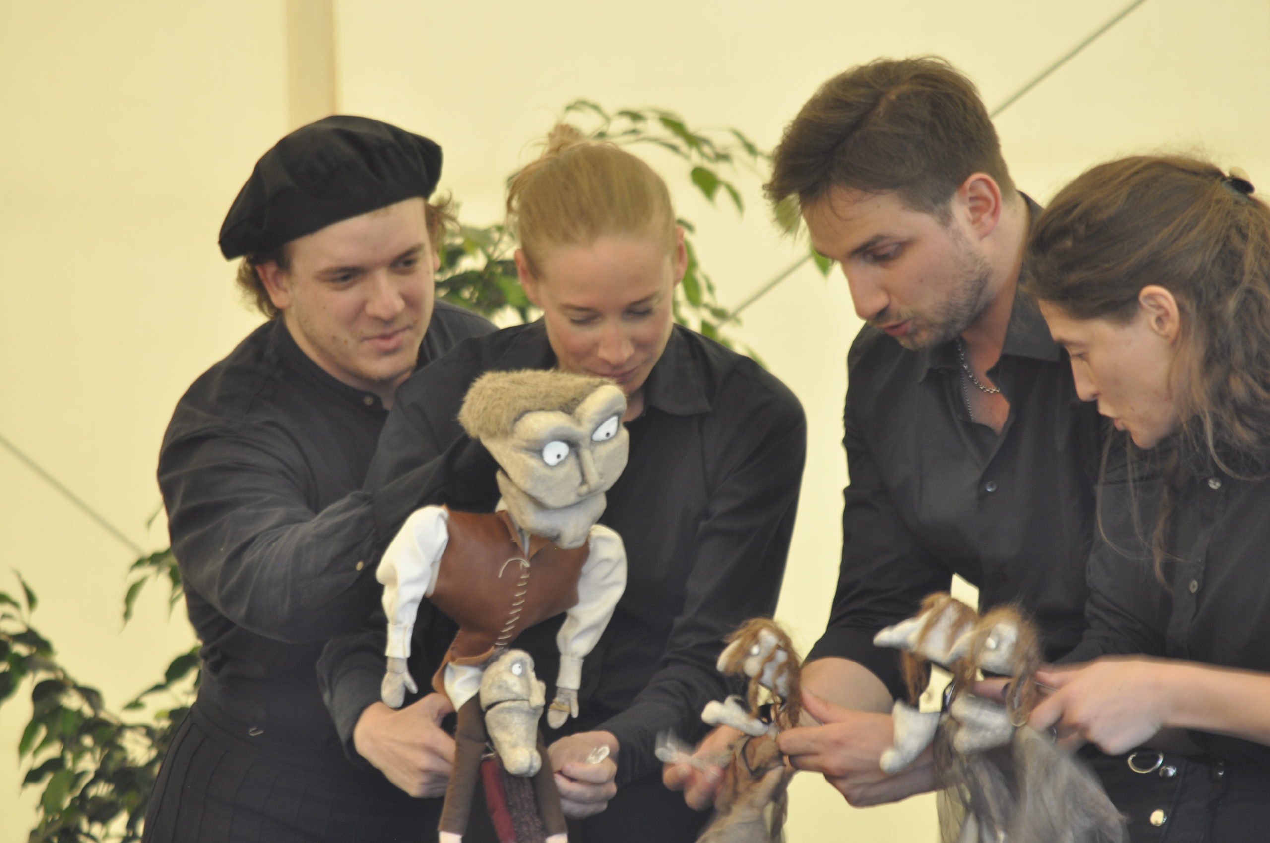 L’un des derniers projets sur lequel j’ai travaillé c’est Macbeth…ou presque. C’est un spectacle issu d’une opportunité, d’un moment, et qui tout à coup a eu une vie plus grande que celle qu’on imaginait. A partir d’une carte blanche proposé par La Parfumerie à Genève, Maya Bringhen, jeune metteuse en scène également issue de Serge Martin, s’est lancé dans une idée folle : Et si Macbeth était monté en marionnettes ? Et si une tragédie n’était pas forcément triste ?