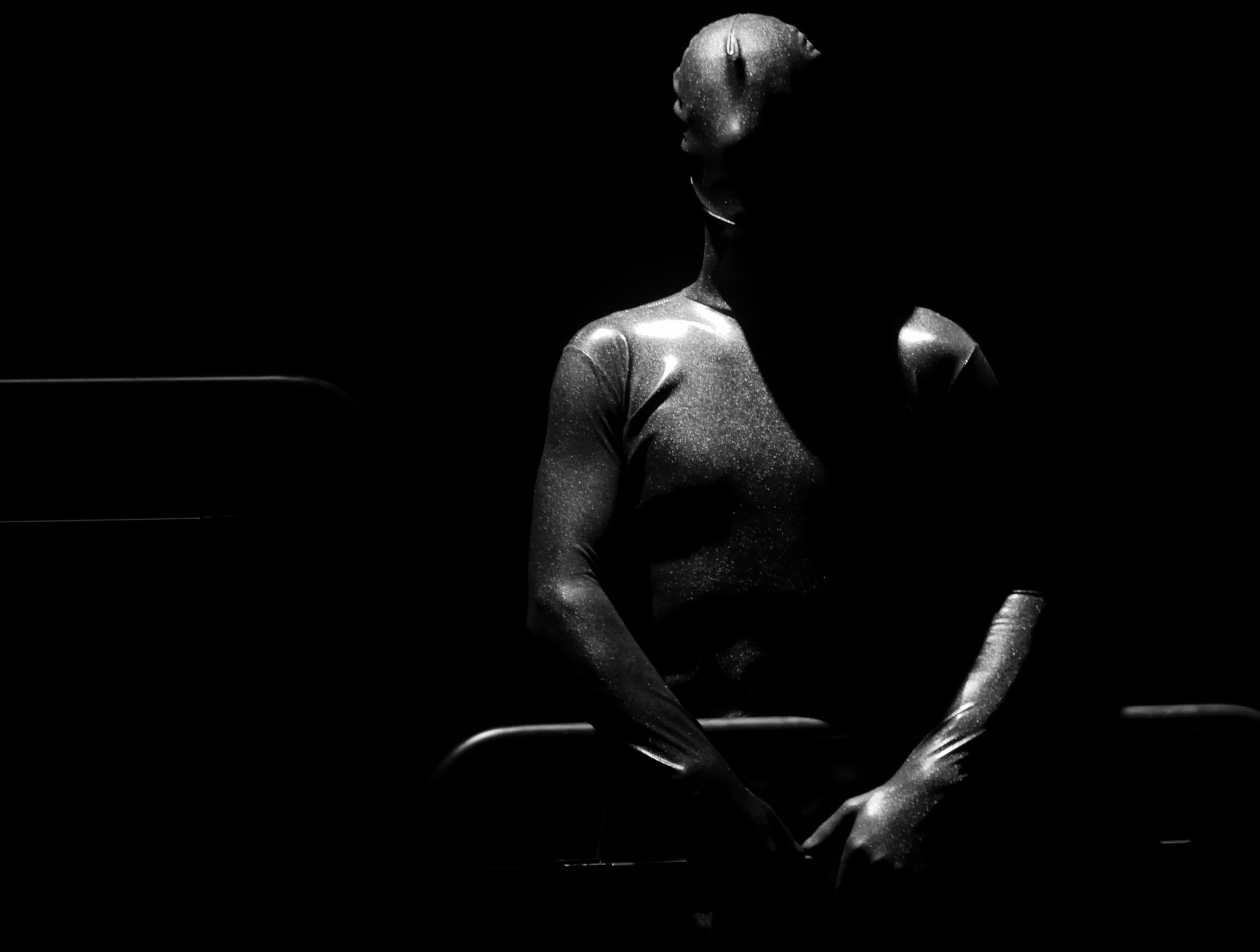 Son apparition « en creux » dans Blessures au visage de Howard Barker, mis en scène par Pascal Gravat, motive mon désir d’entretien. Je n’avais jamais vu le néant s’incarner, ni le vide danser. Vêtu d’un costume intégral noir, sa silhouette muette trouait l’espace, vampirisant le réalisme à vue.